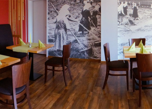 Wir bieten die beliebten traditionellen Thüringer Gerichte – mit Produkten aus der Region, leichte energiereiche Kost für Radfahrer, süße Verführungen mit frisch zubereiteten Kaffeespezialitäten. Saisonale Angebote von Spargel bis Wild runden die Speisekarte ab.